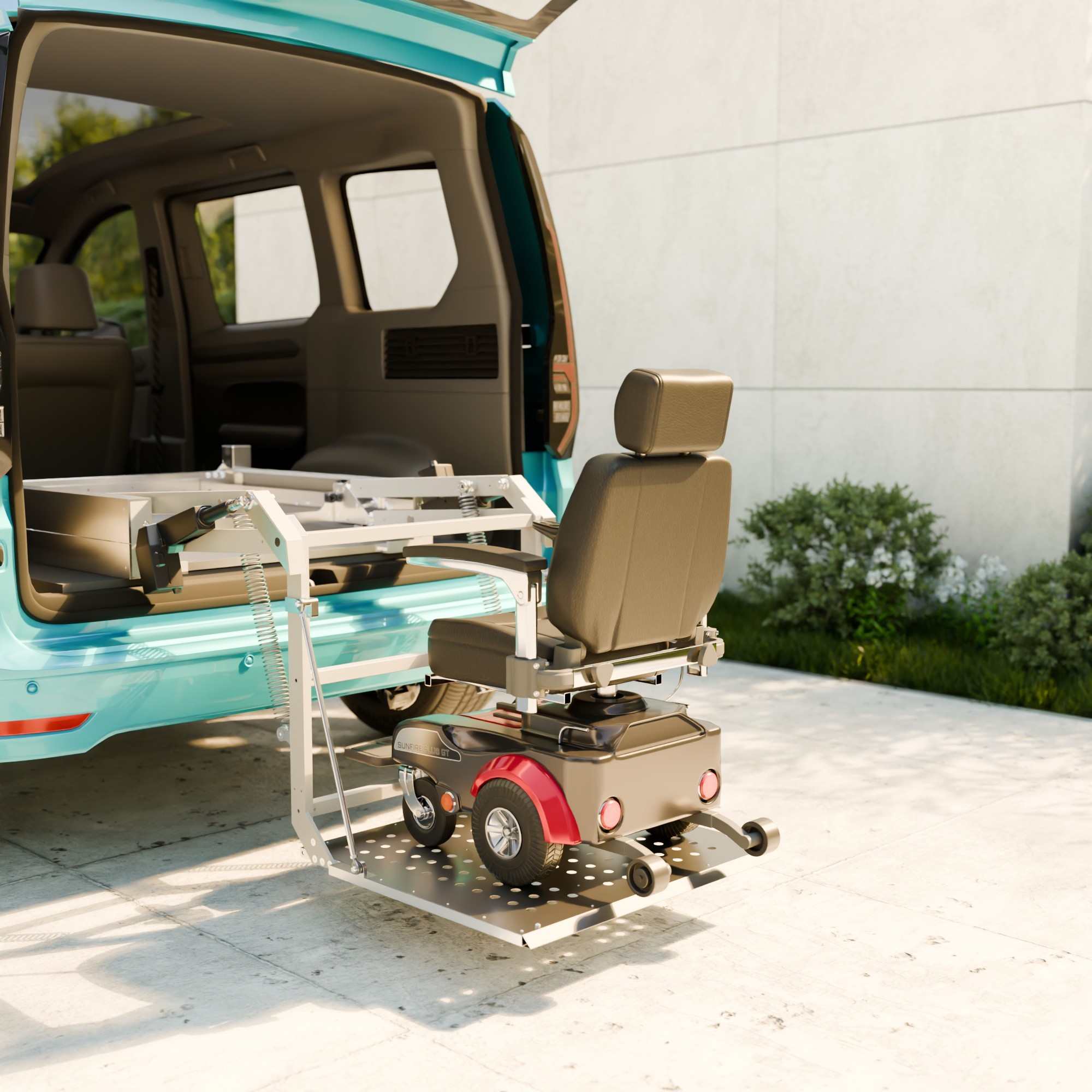 Der Scooterboy ist unser leistungsstärkstes Rollstuhlverladesystem: Er verlädt Elektromobile, E-Scooter und schwere Elektrorollstühle bequem per Knopfdruck in den Kofferraum bis zu einem Gewicht von bis zu 180 kg. Dank verschiedener Plattformgrößen passt der Scooterboy in nahezu alle Hochdachkombis, Vans und Minivans.